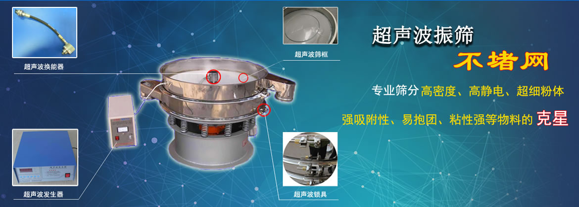 超聲波振動篩是將220V、50Hz或110V、60Hz電能轉(zhuǎn)化為18KHz的高頻電能,輸入超聲換能器,將其變成18KHz機械振動,從而達到高效篩分和清網(wǎng)的目的,使超微細粉篩分成為易事。該系統(tǒng)在傳統(tǒng)的振動篩基礎(chǔ)上在篩網(wǎng)上引入一個低振幅、高頻率的超聲振動波(機械波),以改善超微細粉體的篩分性能。附加在篩網(wǎng)上的超聲振動波(機械波),使超微細粉體接受巨大的超聲加速度,從而抑制粘附、摩擦、平降、楔入等堵網(wǎng)因素,提高篩分效益和清網(wǎng)效益。特別適合高附加值精細粉體的用戶使用。