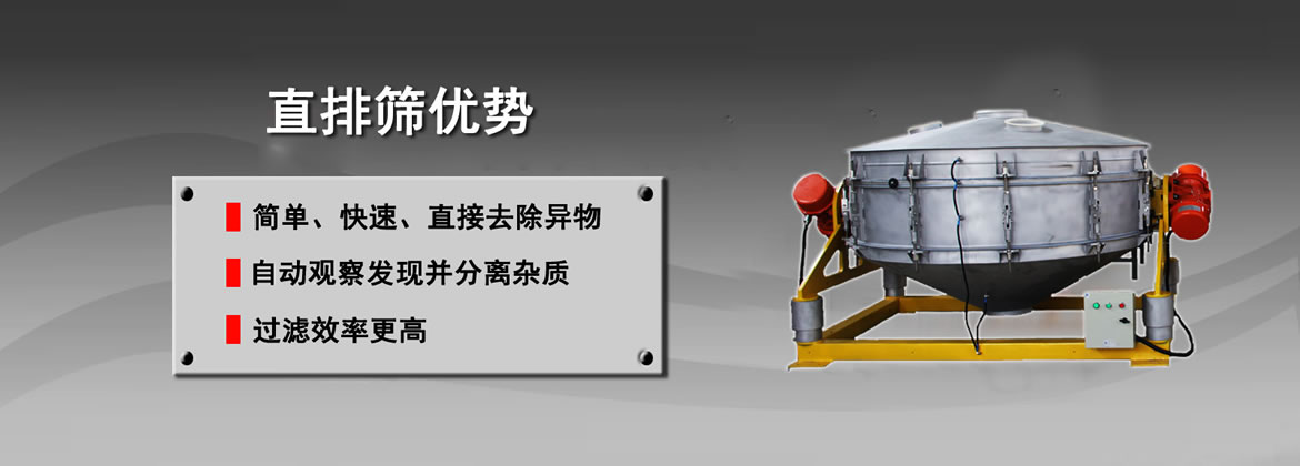 直排篩是在旋振篩的基礎(chǔ)上設(shè)計的一種篩分過濾篩,通過兩臺相同大小的振動電機對稱的安裝在篩體的兩側(cè),和旋振篩一樣,電機的上下兩端都安裝有偏心重錘,電機在轉(zhuǎn)動時產(chǎn)生三次元運動作用于篩面從而達(dá)成對物料的篩分作業(yè),同時出料口為直排式設(shè)計來提高排料的速度。