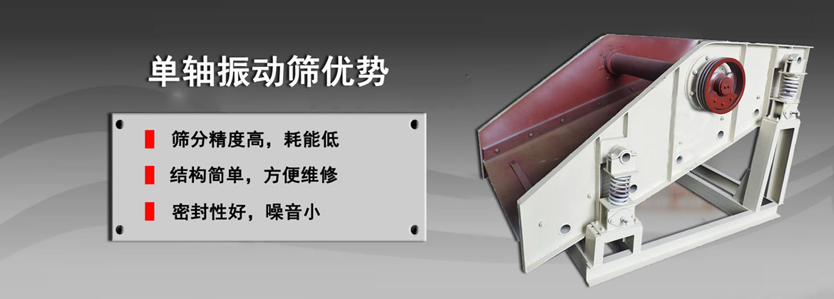 【產(chǎn)品介紹】:單軸振動篩層數(shù)有單層和雙層,專門針對中細粒物料的分級,單軸篩運動軌跡 為圓,具有結(jié)構(gòu)簡單、維修方便、作業(yè)可靠的優(yōu)點。