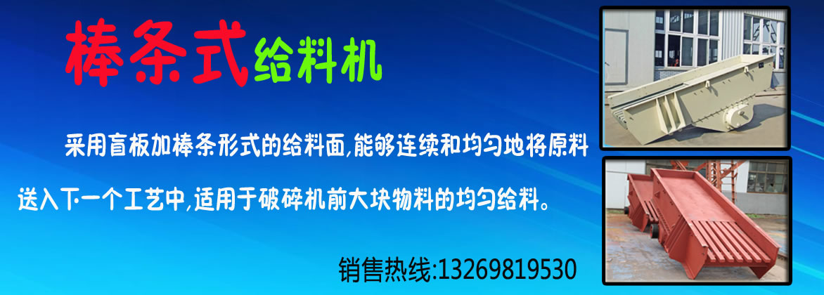 該設(shè)備特別適用于黑色或有色金屬礦石、建筑石料粗碎或中碎前的給料用,其樣式分為:激振器式、振動(dòng)電機(jī)式、吊掛式三種,其棒條縫隙可調(diào),能在給料同時(shí)將泥土和細(xì)碎物料分離出去,有效地發(fā)揮了后面的破碎機(jī)功能。